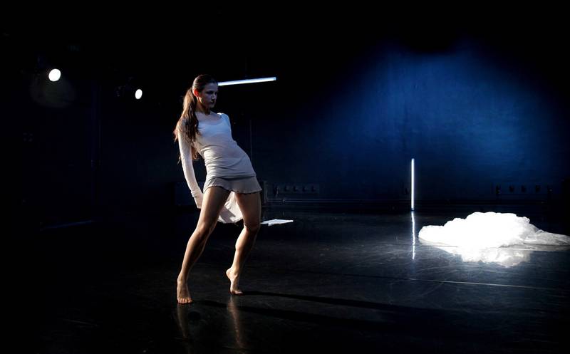 Nótt is s set of personal stories, originating from the same emotion, what they have in common is a feeling of a summer night. Nótt is an impression, a song, a smell, Nordic goddess, a nocturne. Movement arises from a moment of silence, from physical memory, drawing an image in the space. A moment that has just passed reappears. Over and over again. Memory is storing images, body is storing emotions. Nothing that is produced by body can be determined anymore - everything needs to be found, invented anew; to recognize a smell of the movement, a breath of light, a temperature of sound. Impossible images merge on the paths that are promptly blurred, while imprints remain toned inside of the body like a memory: between pulsation and extension. My neck hurts, I squeeze my forehead, I feel dry air in my throat ...