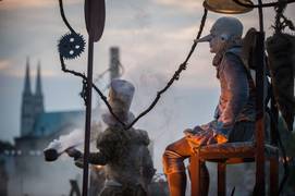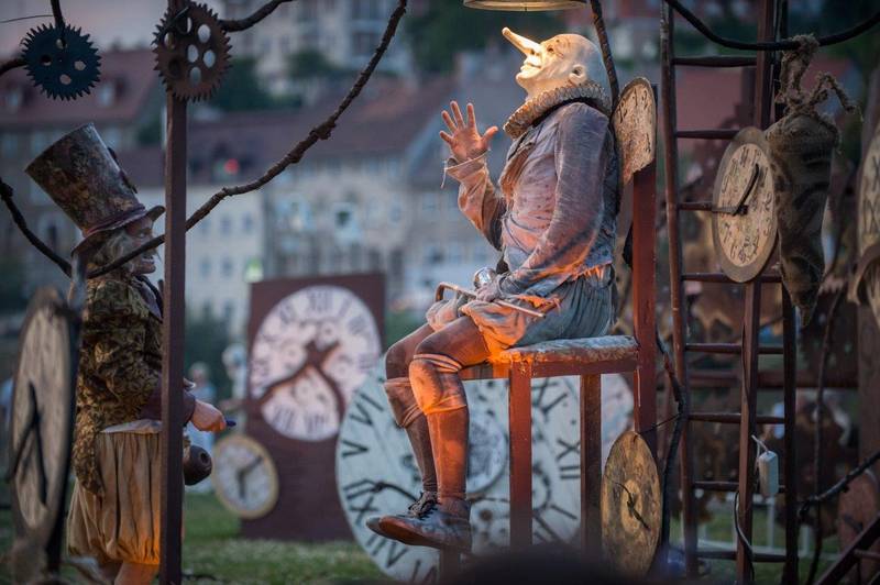 The Lost Wheels Of Time is an outdoor visual clown show for all ages. An unusual mix of humour and surrealism, it equally appeals to children and adults and is enthralling for both naive and sophisticated audience. The simple story about the relationship between two eccentric, cartoon-like characters, is not merely an entertaining array of gags, but also a philosophical reflection upon issues of man versus Nature, old age versus youth, compassion versus egoism.